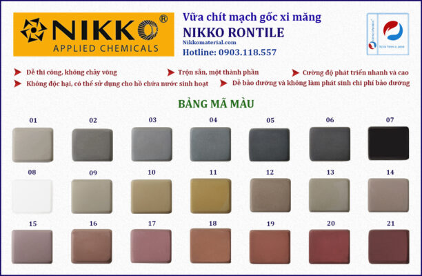 - Sự kết hợp giữa tính năng kỹ thuật và yếu tố thẩm mỹ giúp keo chà ron Nikko không chỉ hoàn thiện bề mặt mà còn góp phần nâng cao giá trị và tuổi thọ công trình.